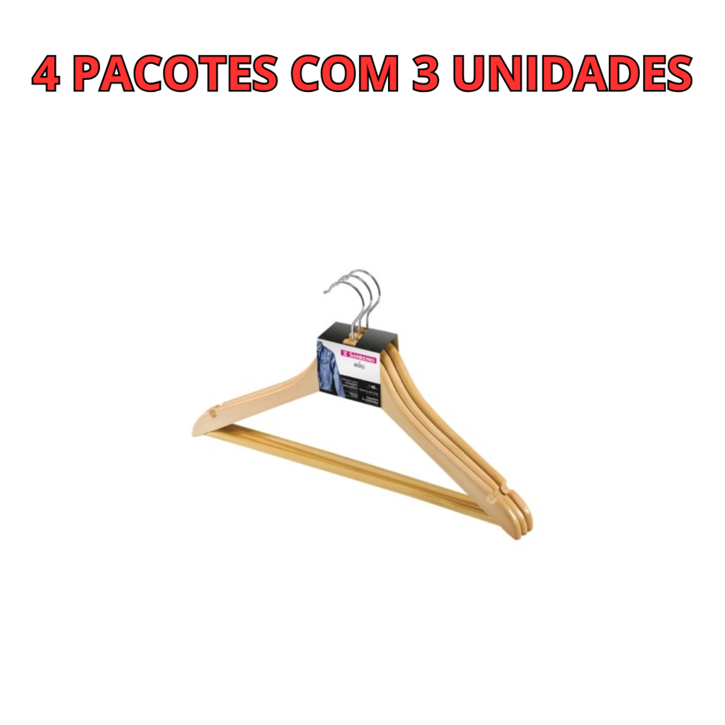 CABIDE DE ROUPA ADULTO MADEIRA – Kit com 3 Unidades